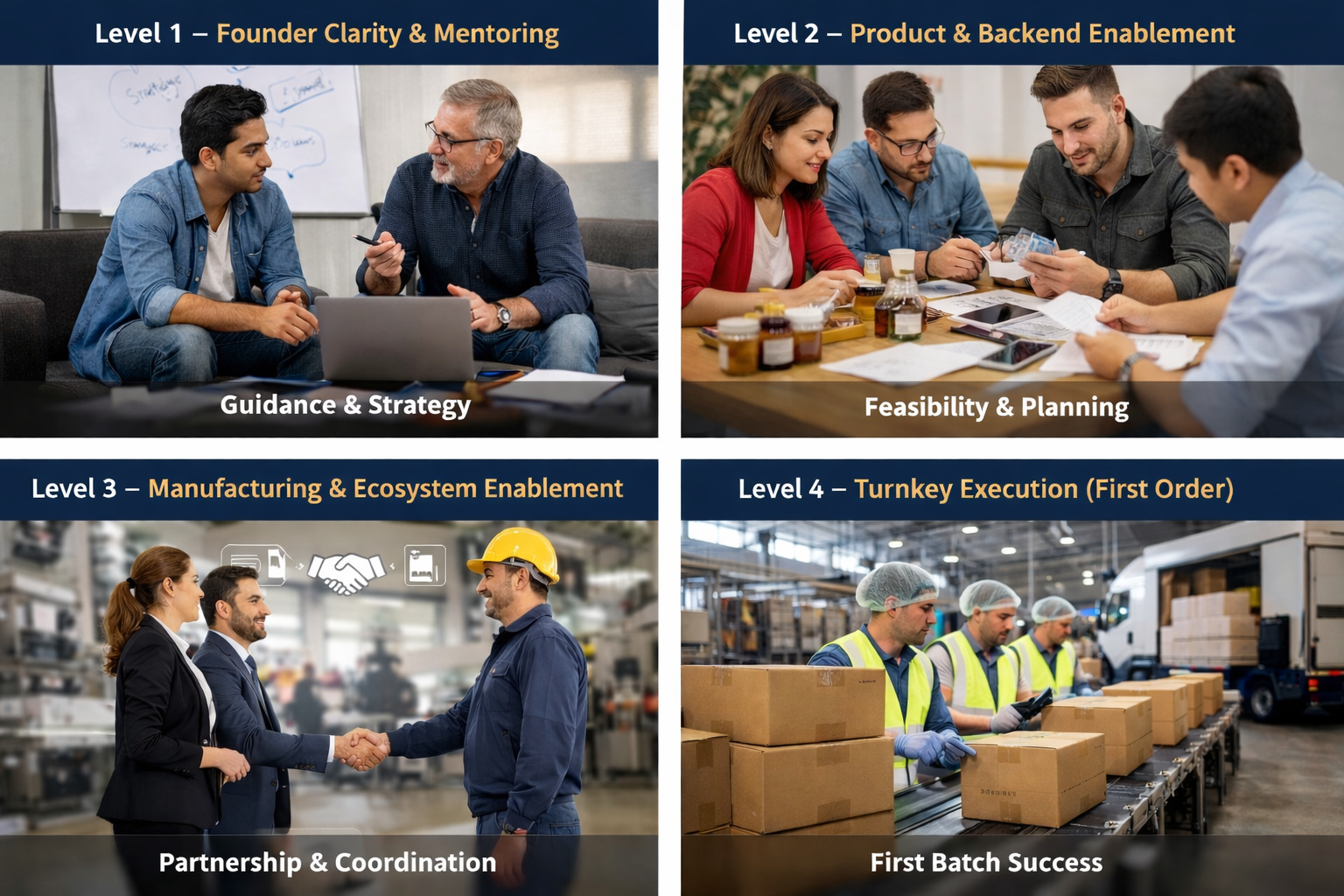 To support founders and brands through structured guidance, execution clarity, and third-party manufacturing enablement—connecting them with reliable partners, coordinating product execution, and helping them reach first-order delivery efficiently, while founders focus on branding, marketing, and sales.